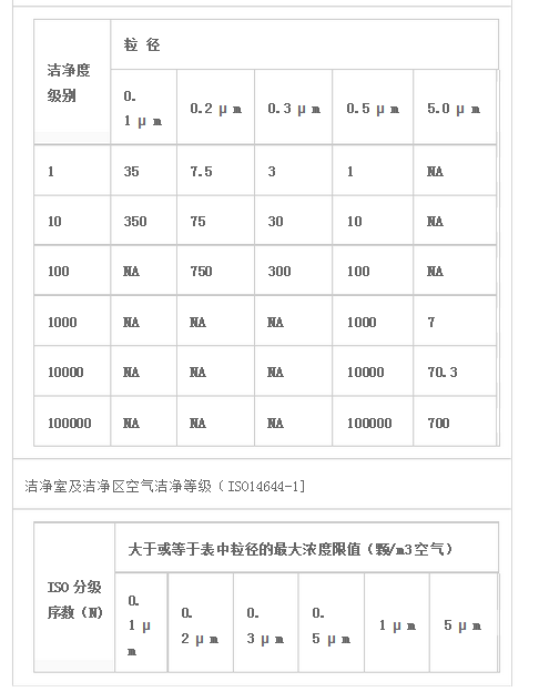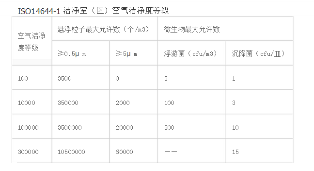 潔凈室檢測應參考的潔凈等級: 空氣潔凈度等級參考: