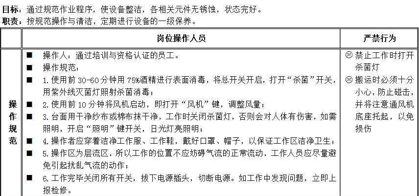 超凈工作臺(tái)標(biāo)準(zhǔn)操作規(guī)程介紹