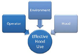用于有效罩使用的“**佳位置”發(fā)現(xiàn)在三個元件的交叉點(diǎn):(1)操作者和他/她如何與罩相互作用; (2)實(shí)驗(yàn)室環(huán)境及其如何影響罩; 和(3)罩本身。